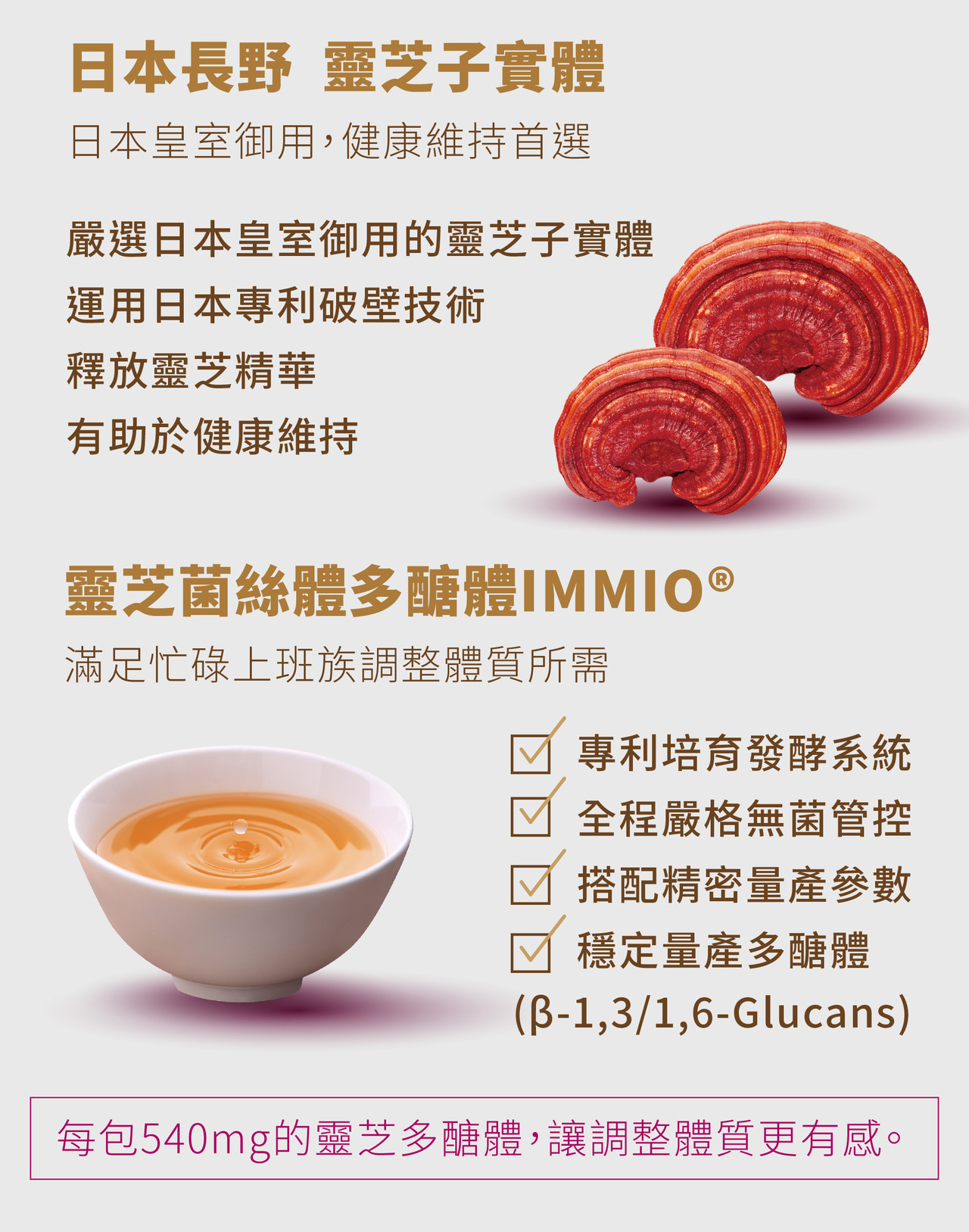●嚴選日本皇室御用的靈芝子實體,有助健康維持
