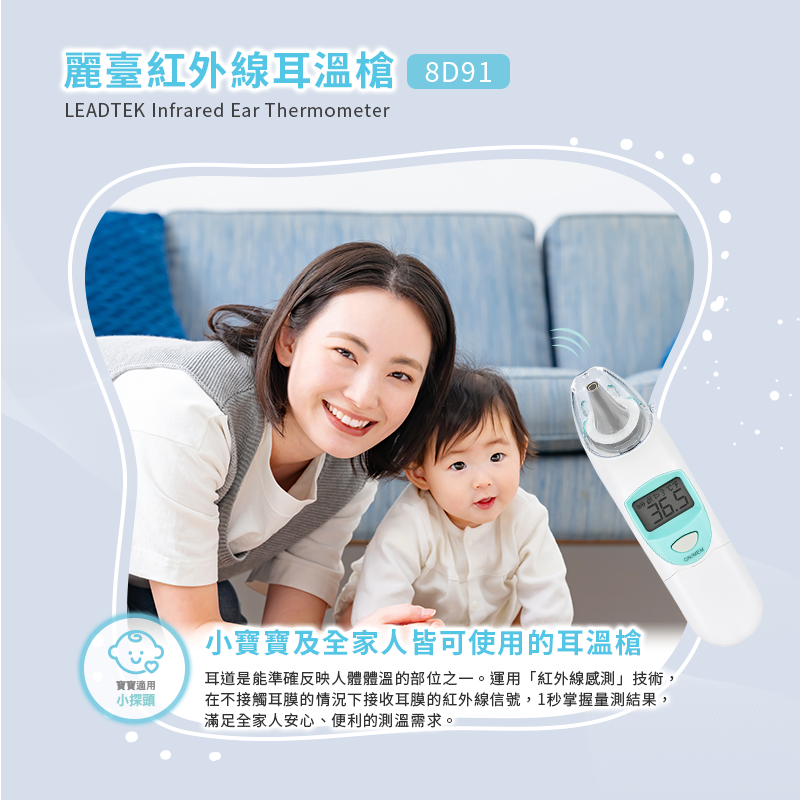 紅外線耳溫槍 8D91【寶寶適用小探頭 一秒量測,內附21個耳套】台灣製