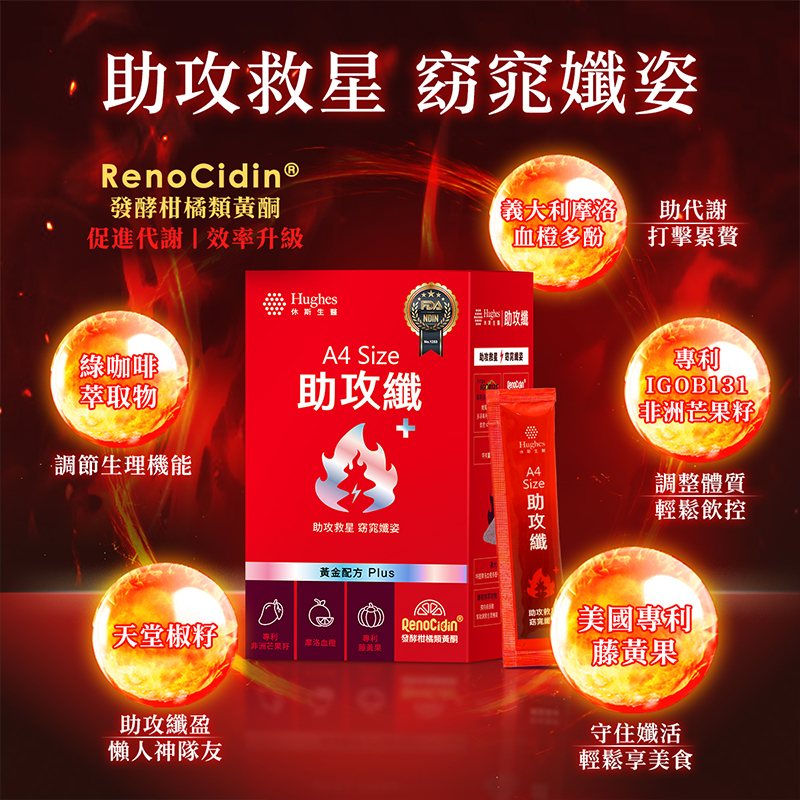 首頁/保健商品/女性保健/A4 SIZE 助攻纖 A4 SIZE 助攻纖NT$699 啟動妳的孅女力! 摩洛血橙、非洲芒果等超強配方, 加上RenoCidin®柑橘類黃酮發酵物! 促進代謝,不再當個斤斤計較的女生~ 專利RenoCidin®配方,促進代謝、效率再升級。 添加義大利摩洛血橙萃取,助代謝、打擊累贅。 專利IGOB131非洲芒果籽萃取,調整飲食、輕鬆飲控。 美國專利藤黃果萃取,守住孅活、輕享美食。 天堂椒籽、綠咖啡萃取物,助攻纖盈、調節機能,懶人神隊友。 通過多項安全認證,品質安全有保障。 ※每包2克,每盒14包 A4 SIZE 助攻纖 數量 加入購物車 我有興趣已加入願望清單 我有興趣 貨號: hughes-009 分類: 女性保健, 保健商品, 日日順暢, 男性保健 品牌: 休斯生醫 描述 評價 (0) 商品評價 目前沒有評價。 只有註冊並且購買過商品的顧客才能撰寫評價。 相關商品 21% OFF 美姬膠原蛋白粉包 NT$1,550 NT$1,230 加入購物車 我有興趣 我有興趣 20% OFF 皇家晶鑽⾦盞花葉黃素膠囊 NT$1,590 NT$1,270 加入購物車 我有興趣 我有興趣 微膠囊化鐵(30粒/瓶) NT$300 加入購物車 我有興趣 我有興趣 透明質酸鈉Hyaluronic Acid(30粒/瓶) NT$500 加入購物車 我有興趣 我有興趣