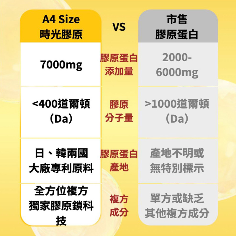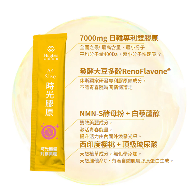 首頁/保健商品/女性保健/A4 SIZE 時光膠原 A4 SIZE 時光膠原NT$799 全國最高含量、最小分子! 休斯獨家膠原鎖配方RenoFlavone® 給妳滿滿膠原,逆轉時光不失膠! 日韓兩國專利頂級膠原蛋白胜肽 7000mg 極速吸收成分 400Da(道爾頓)超小分子 添加獨家膠原鎖配方RenoFlavone®發酵大豆多酚 成分獲得美國FDA新膳食成分 (NDI字號: 1283) 唯一核可上市 80mg頂級玻尿酸、西印度櫻桃萃取維他命C 添加專利NMN、白藜蘆醇,逆轉時光的動力源 ※每包8克,每盒14包 A4 SIZE 時光膠原 數量 加入購物車 我有興趣已加入願望清單 我有興趣 貨號: hughes-004 分類: 保健商品, 女性保健, 未分類, 美容保健 品牌: 休斯生醫 描述 評價 (0) 商品評價 目前沒有評價。 只有註冊並且購買過商品的顧客才能撰寫評價。 相關商品 綜合維生素礦物質(30粒/瓶) NT$400 加入購物車 我有興趣 我有興趣 頂級螺旋藻錠 NT$1,080 加入購物車 我有興趣 我有興趣 左旋精氨酸(60粒/瓶) NT$400 加入購物車 我有興趣 我有興趣 微膠囊化鐵(30粒/瓶) NT$300 加入購物車 我有興趣 我有興趣