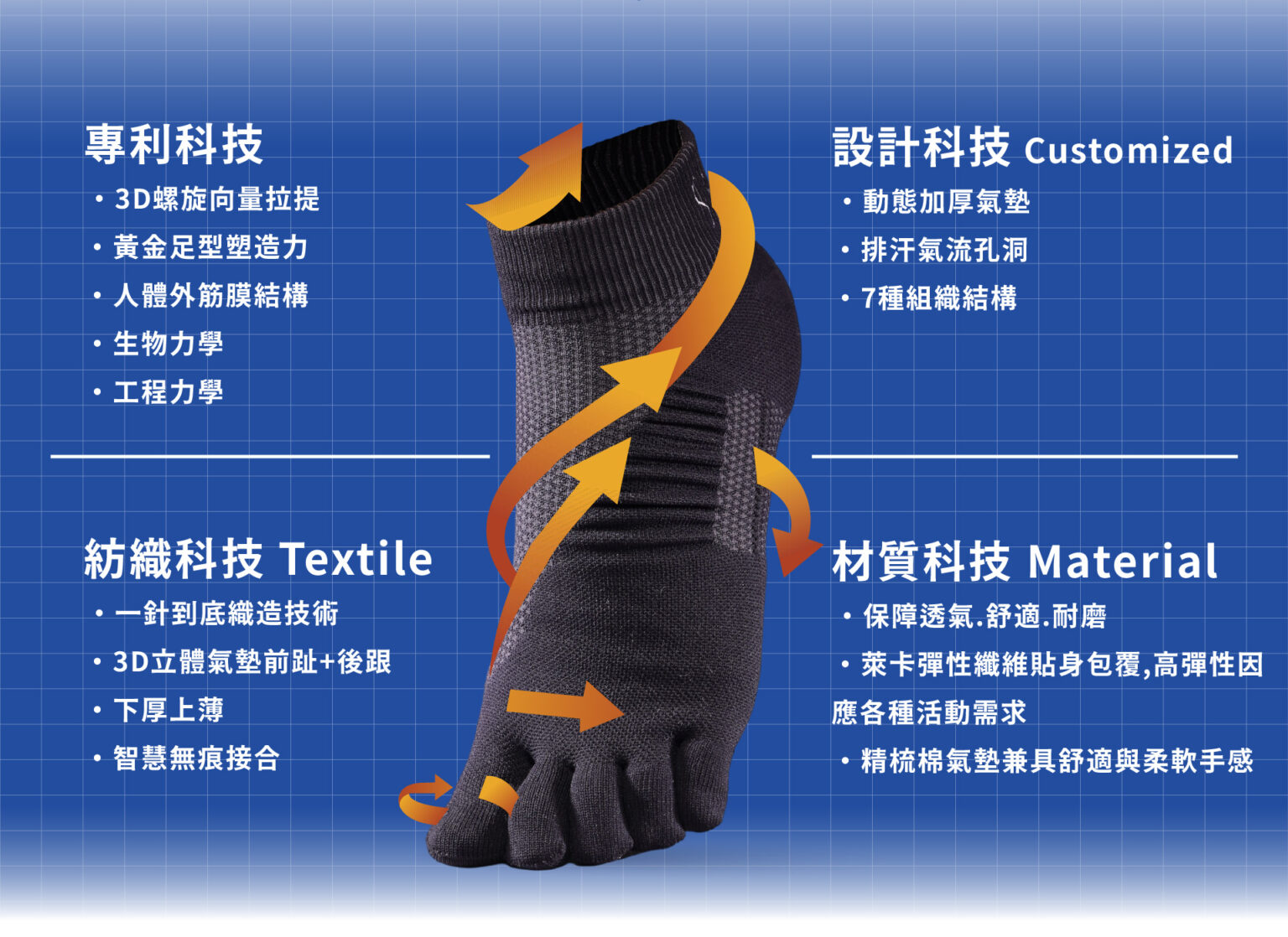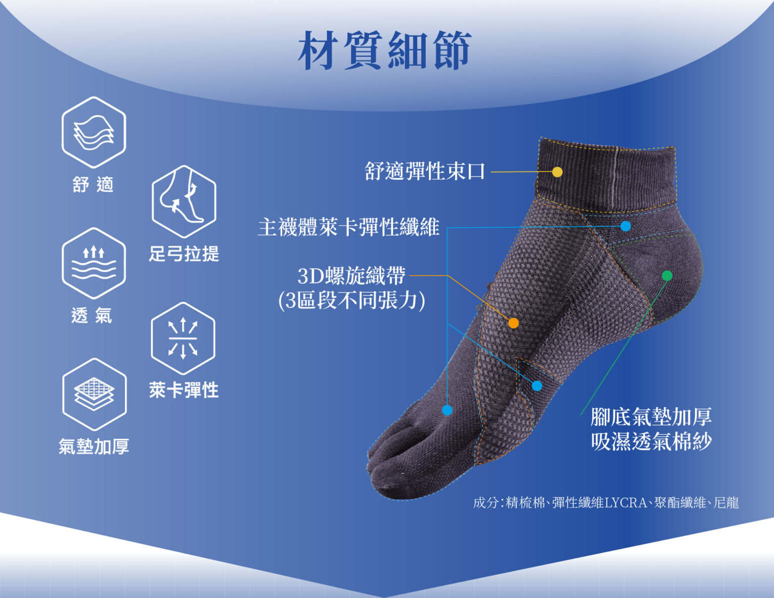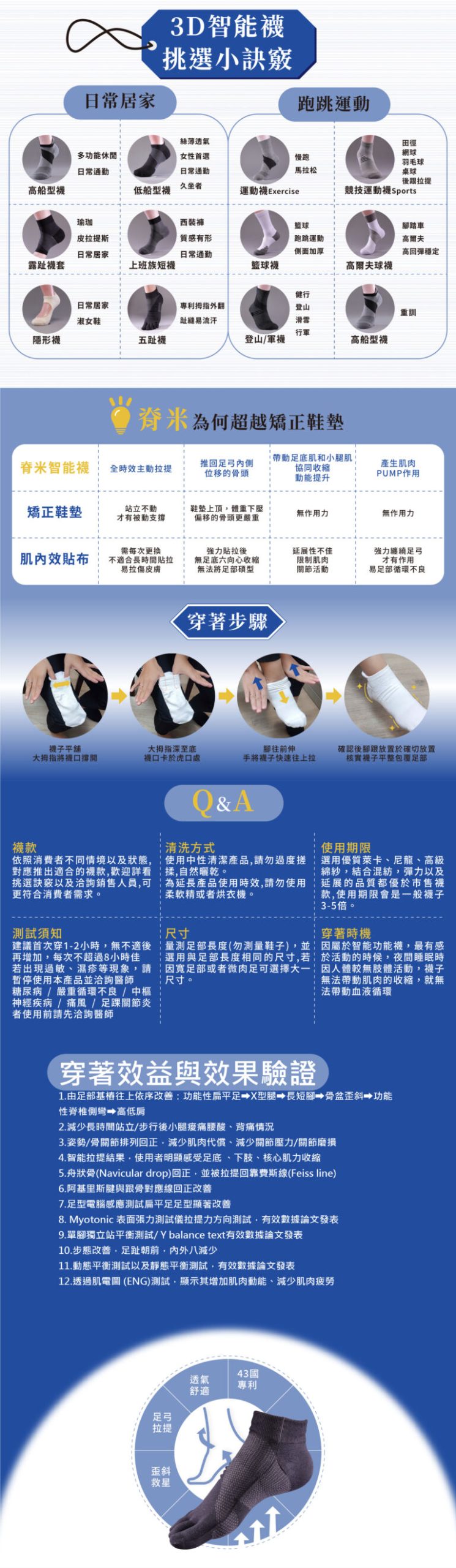 首頁/照護用品/功能襪款/AI 3D 智能五趾襪 14% OFF AI 3D 智能五趾襪NT$1,680 NT$1,450 ★溫馨提醒:左/右腳請勿穿錯邊★ •抑制拇指外翻 ◆ 顏色:銀黑 ◆ 材質:彈性纖維50%(LYCRA),,聚酯纖維10%、尼龍40% ◆ 產地:台灣 本商城 脊米之襪款 任選3雙95折 ,歡迎選購 尺寸選購提醒 若您的腳型較瘦,建議選擇小一號尺寸以達到更佳的貼合效果。 例如:腳長 20 公分,但因腳型偏瘦,建議選擇 17–20 公分,而非 20–23 公分。 PS. 無法提供新品試穿,拆封後無法退換貨,請先確認好自己的尺寸再購買。 尺寸 請選取一個選項17-20cm20-23cm23-26cm26-29cm29-32cm32-35cm清除 AI 3D 智能五趾襪 數量 加入購物車 我有興趣已加入願望清單 我有興趣 貨號: GiMianlign-TS01 分類: 功能襪款 品牌:脊米 穿就正 描述 額外資訊 品牌 評價 (0) https://shop.med-net.com/wp-content/uploads/2025/11/五趾襪.mp4 尺寸 17-20cm, 20-23cm, 23-26cm, 26-29cm, 29-32cm, 32-35cm 品牌 脊米 穿就正 商品評價 目前沒有評價。 只有註冊並且購買過商品的顧客才能撰寫評價。 相關商品 14% OFF AI 3D 智能籃球襪 NT$1,680 NT$1,450 選擇規格 此產品有多種款式。 可在產品頁面選擇選項 我有興趣 我有興趣 14% OFF AI 3D 智能上班族短襪 NT$1,580 NT$1,360 選擇規格 此產品有多種款式。 可在產品頁面選擇選項 我有興趣 我有興趣 14% OFF AI 3D 智能運動襪Sports (厚)-競技型 NT$1,580 NT$1,360 選擇規格 此產品有多種款式。 可在產品頁面選擇選項 我有興趣 我有興趣 14% OFF AI 3D 智能運動襪Exercise (薄)-一般型 NT$1,580 NT$1,360 選擇規格 此產品有多種款式。 可在產品頁面選擇選項 我有興趣 我有興趣